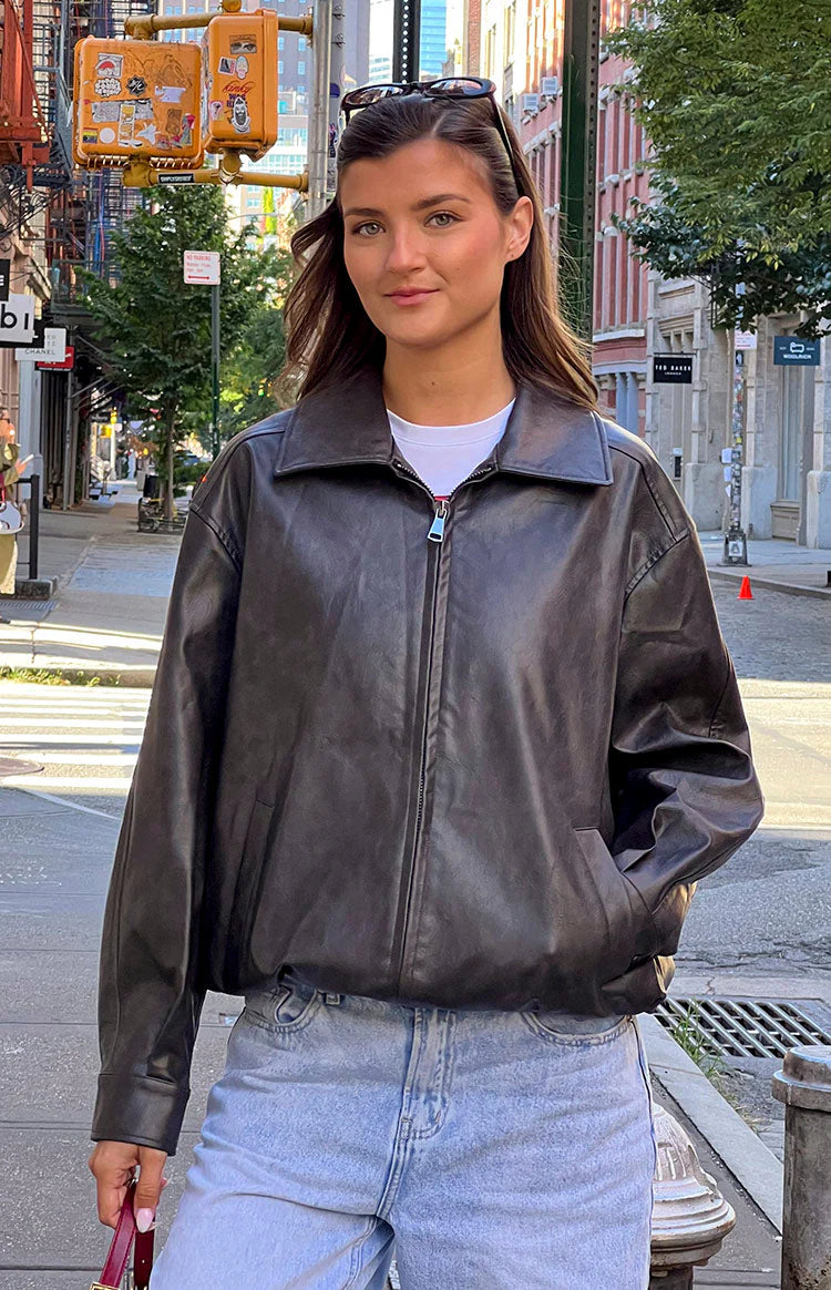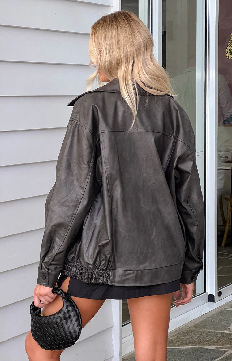 The Abbi PU Vintage Black Bomber Jacket is the ultimate cool girl vibe! Made from a heavy weight PU material in a gorgeous washed black colour, this jacket is the perfect everyday piece in the colder months! Layer it over a cropped tee and high-waisted for a classic vibe, or style with a slip and combat for an effortlessly cool, grunge-inspired look!
