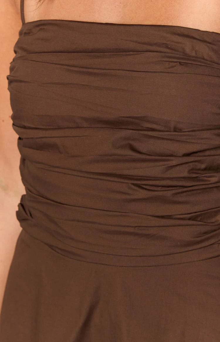Get ready to turn heads in our charming Aiden Brown Lace Up Mini Dress! With gathered details on the bust and an open back featuring strappy accents, this  adds a fun and flirty vibe to any occasion. Perfect for  or , it’s your go-to for a standout look!