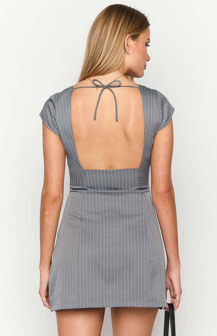 Grey Striped Mini Dress