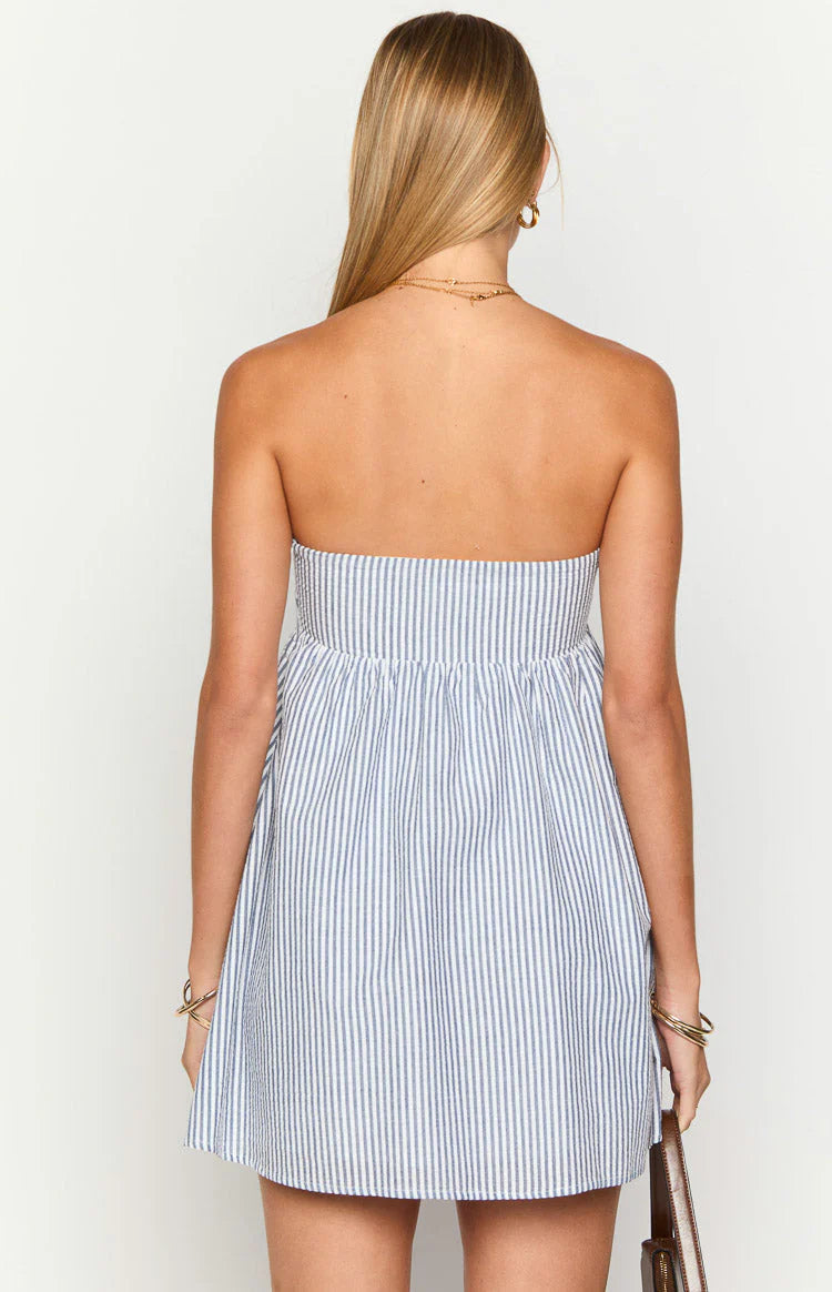 Our Anderson Blue Stripe Babydoll Mini Dress is a sweet and playful addition to your wardrobe! The lightweight cotton material and babydoll silhouette create a feminine and effortless look. Pair it with sandals for a daytime outfit, or dress it up with heeled for a summer party.