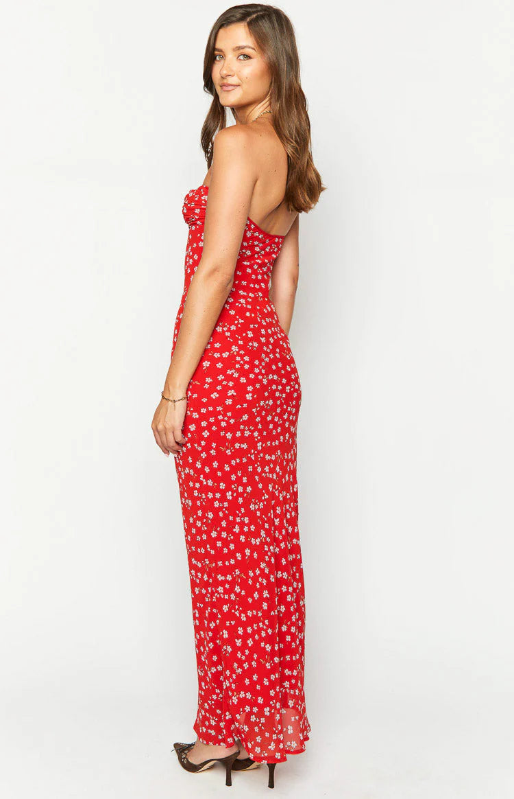 Turn heads in this elegant strapless floral ! Perfect for any  occasion, style it with minimal  for a timeless look.