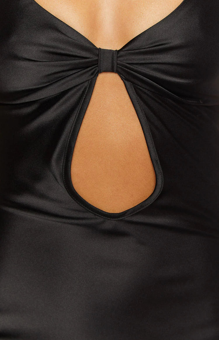 Our black Attina satin maxi dress is the perfect piece for any occasion. This simplistic but unique design will be sure to stand out amongst the crowd. Pair with a kitten and gold to elevate the look!