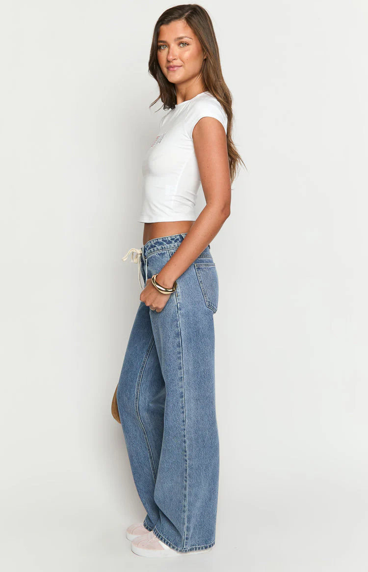 Our Beau Mid Wash Tie Waist Denim Jeans are your new everyday essential, perfect for relaxed weekend adventures or mastering effortless ! The unique tie-waist detail adds a fresh twist to timeless mid-wash , while the straight leg cut offers a flattering, versatile silhouette. Style them with a baby tee and sneakers for ultimate  comfort, or swap in heels and a cropped top for an elevated vibe!