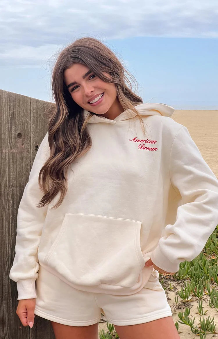 Achieve ultimate comfort and laid-back style with our Beginning Cream American Dream Lounge Shorts! The drawstring and elastic waistband provide a comfortable fit, while the "American Dream" appliqué adds a playful touch. Pair them with the matching for a and cosy look, or team them with a simple for a relaxed everyday vibe.
