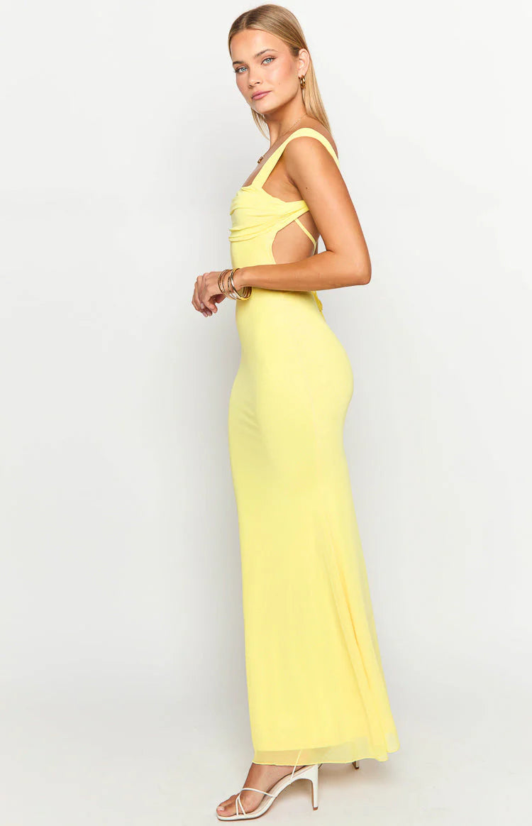 How to style: Add a gorgeous pop of colour to your next in our Beverley Yellow Mesh ! With a figure hugging fit and stunning tie details on the back, this dress is the epitome of playful elegance! Pair with white and delicate jewellery to tie your look together.