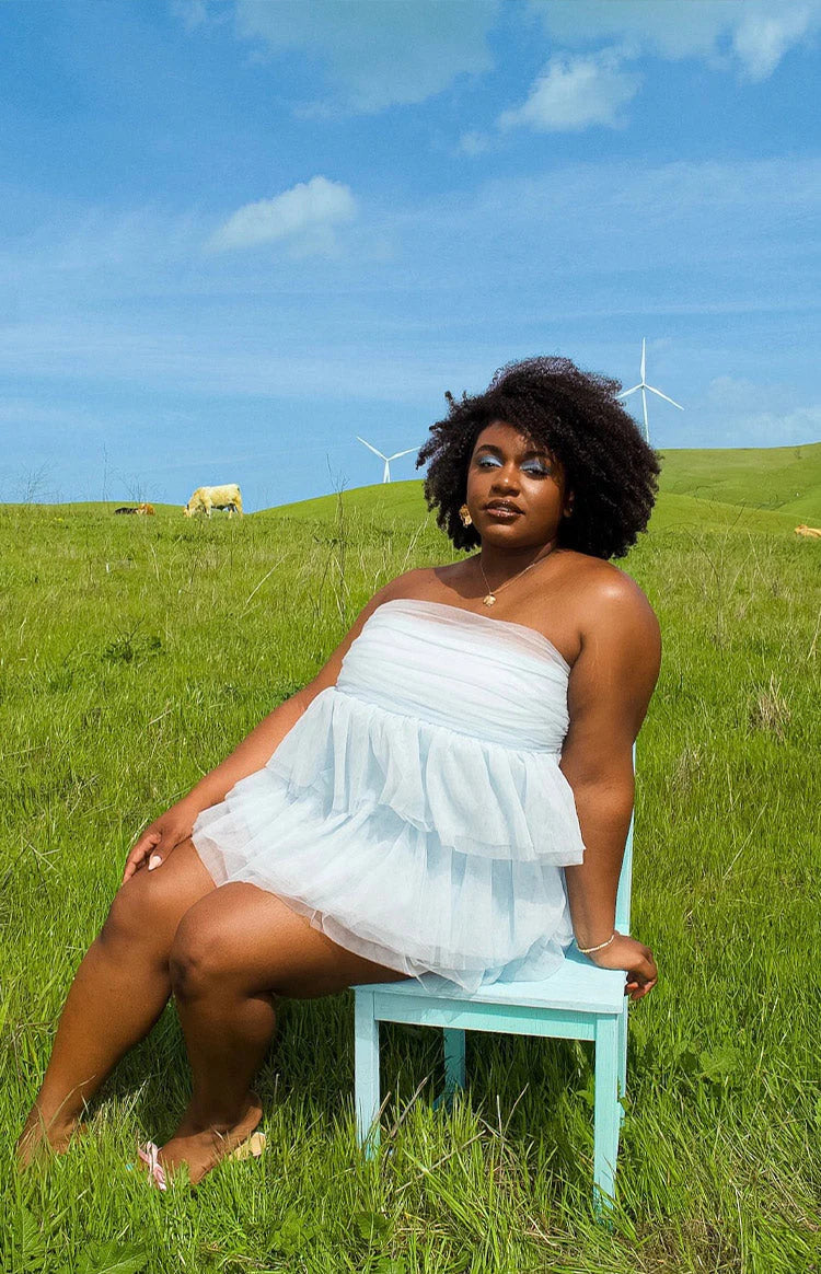 This stunning blue  is the perfect show stopping  outfit. With the beautiful tulle detailing this  mini dress will make heads turn and all eyes on you
