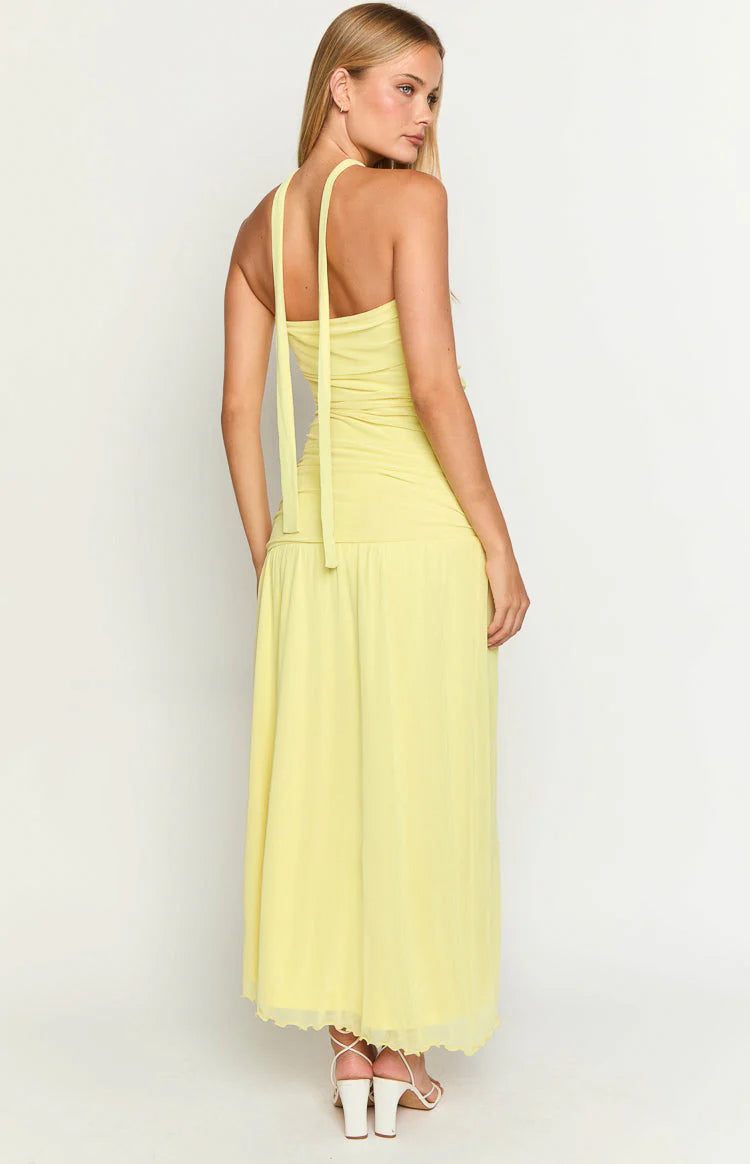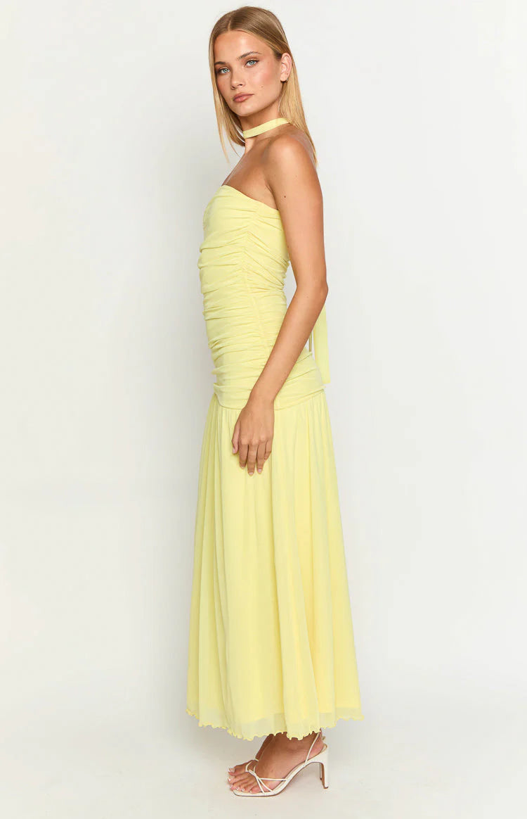 Step into Old Hollywood glamour with the Brayan Yellow Maxi Dress! With flattering ruching and a matching neck scarf, this dress exudes timeless elegance. Whether you’re heading to a  or a  event, pair with kitten heels and gold  for the perfect chic finish.