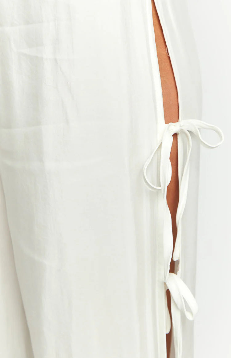 White Side Tie Pants