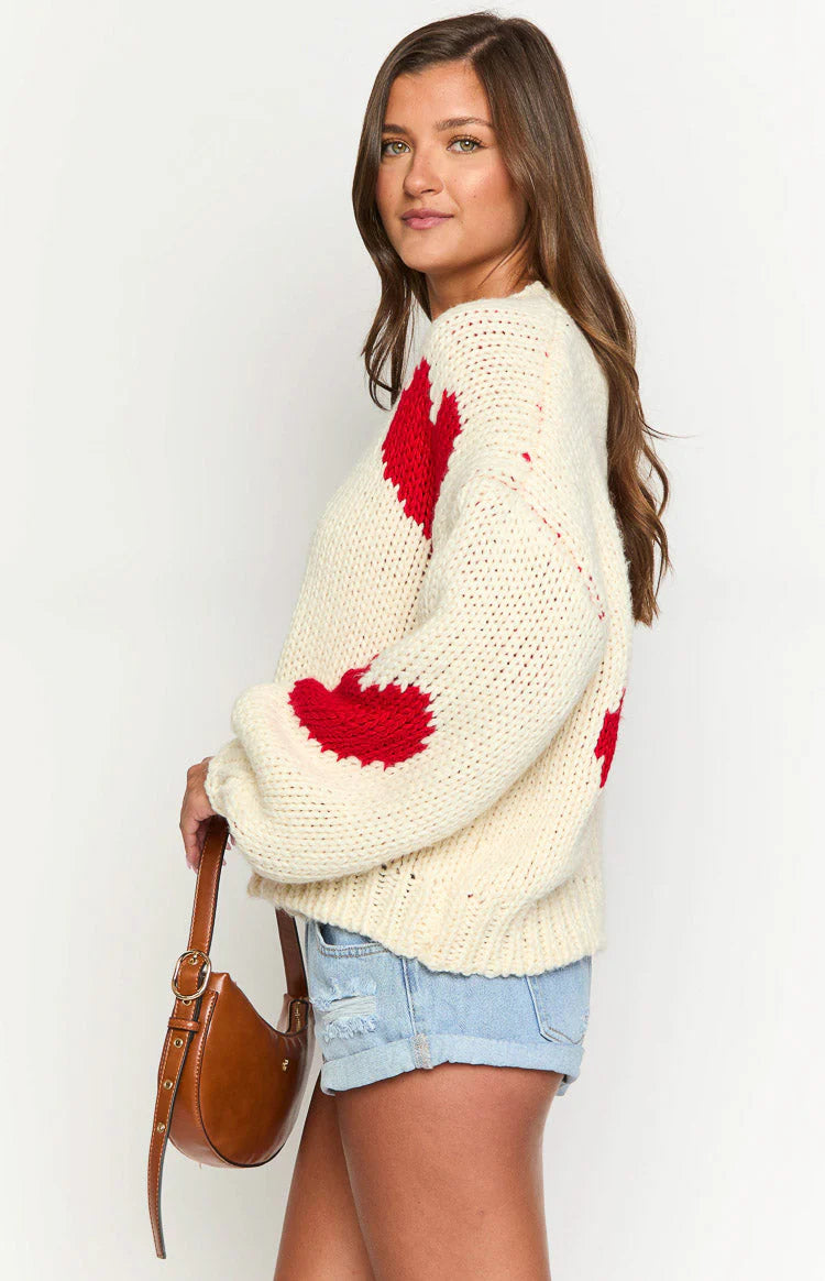 Fall in love with our Chandi Cream Heart Chunky Knit Sweater! Featuring a cozy knit material, heart details and you'll be sure to stay warm and toasty all season long! Wear with a on warmer evenings or with  and sneakers for colder days out!