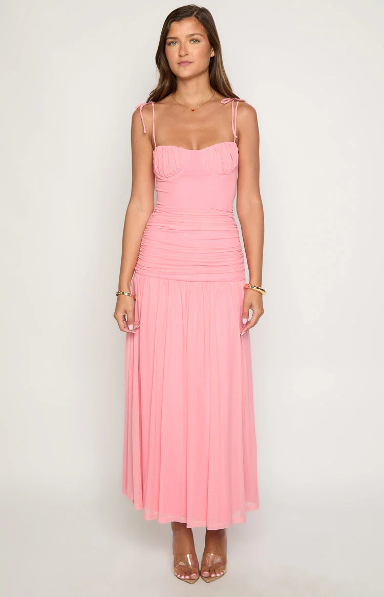 Our Clare Pink Strapless Maxi Dress is the perfect outfit for your next ! Featuring wire bust cups, a drop waist detail, and self-tie shoulder straps, this dress is a must-have for your wardrobe. Pair with white and a matching shoulder for a refined and elegant look!