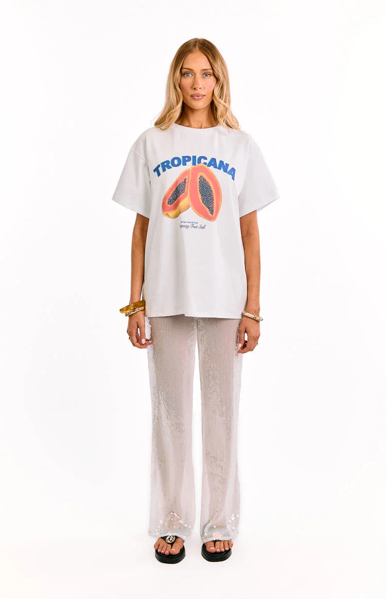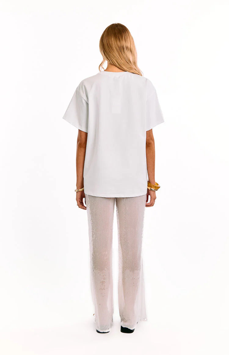 Ready to light up the dance floor at your next or party? Meet our Cordelia White Sequin Wide Leg Pants! These stunning are crafted from a sheer sequin fabrication and feature a comfortable elasticated waistband. For a cool, festival-ready finish, just add a simple and your favourite sneakers.