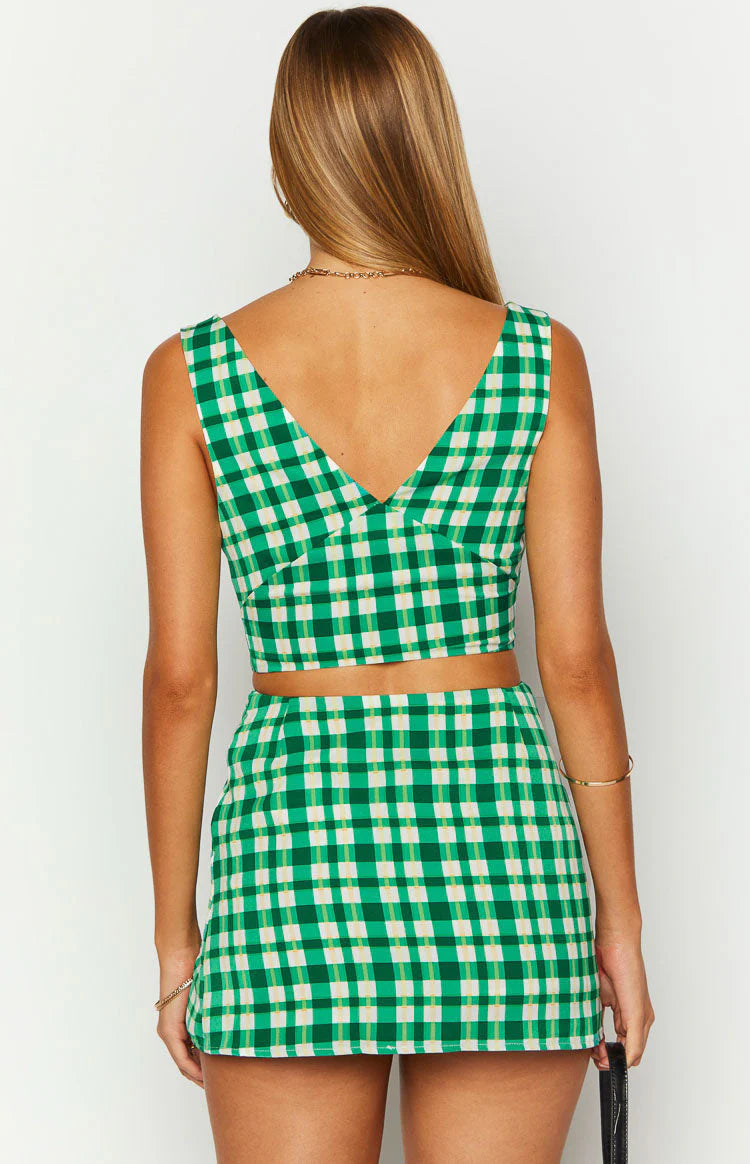 Style our Dahlia Check Crop Top with a long flowy white for a every day outfit that you can wear repeat. Elevate the look with the matching and your favourite heels and you are set for cocktails with the girls or a night out!