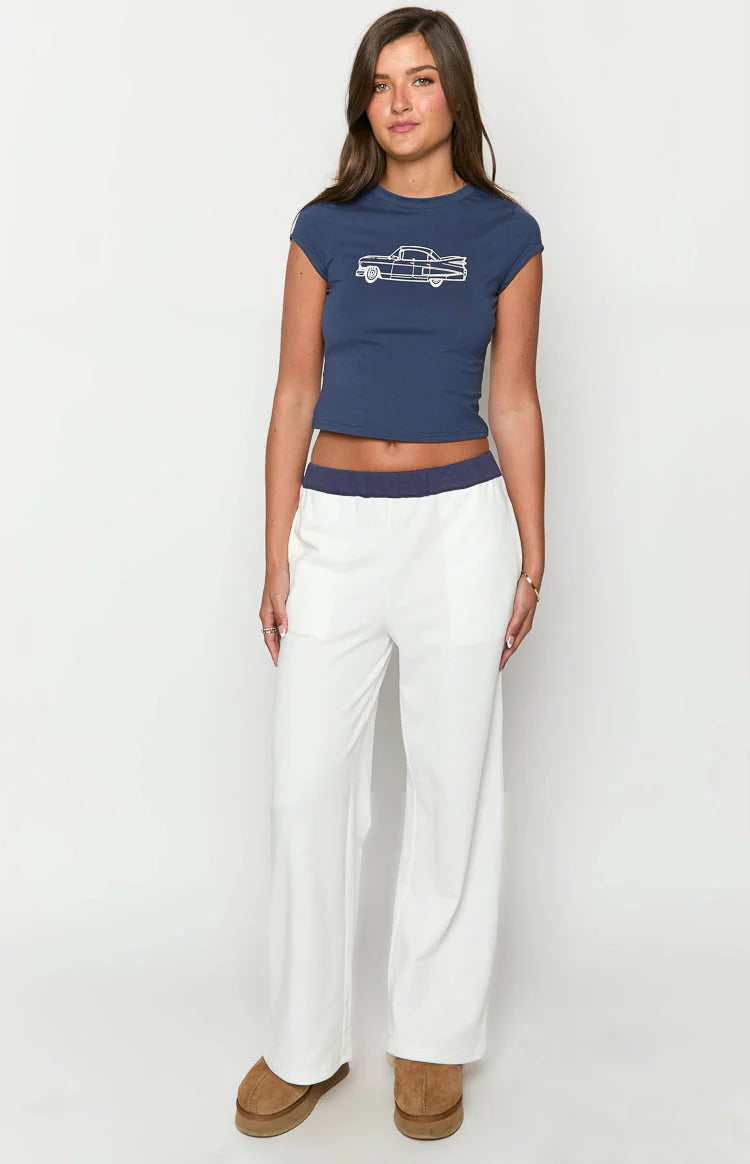 Cream and Navy Contrast Track Pants