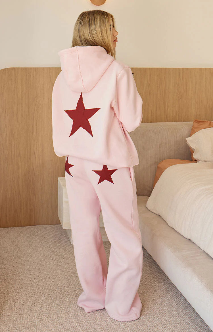 Your new off-duty uniform has arrived, our cosy Dania Star Sweatpants! Crafted from a soft fleece fabric for ultimate comfort, these feature a relaxed straight-leg fit and a cute burgundy star appliqué on the back. Create the perfect coordinated set with the matching hoodie, or pair them with a simple baby tee for an effortless, look.