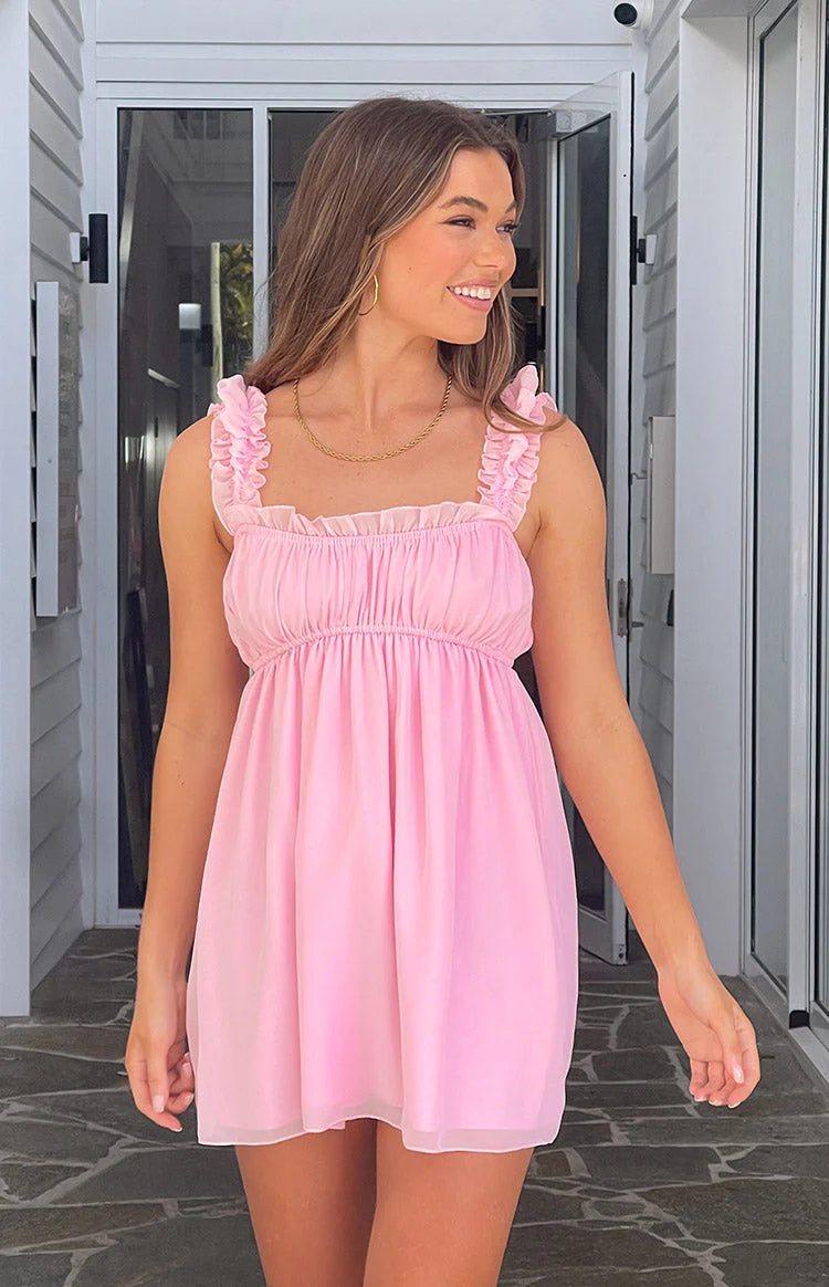 Embrace the coquette vibes in our Dasies pink ! Perfect for a picnic or a . For an elevated style, pair with heels and delicate silver jewellery to complement the soft pink hue.