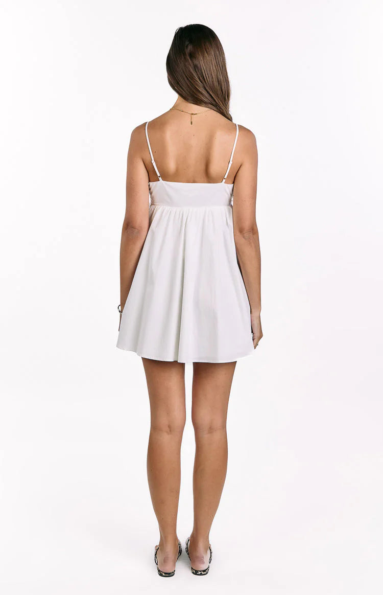 Radiate sweet charm in our Gracelyn White Eyelet Embroidered , perfect for picnics in the park or sun-drenched . This delightful baby doll style features intricate broderie detail at the front top opening and a flowy hem, creating an ethereal silhouette. Complete your charming look with delicate sandals and a woven bag for an effortlessly feminine ensemble!