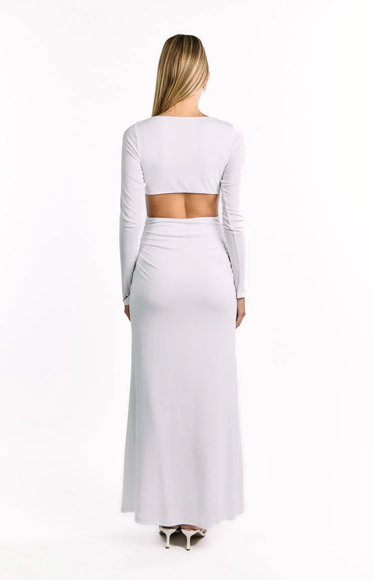 Elevate your wardrobe with our Grayson White Maxi Dress, perfect for your next  or ! Crafted from a comfortable stretch rib jersey, it features  and a cut out back for an effortlessly stunning silhouette. Simply pair it with heels and your favourite gold jewellery for a polished look.