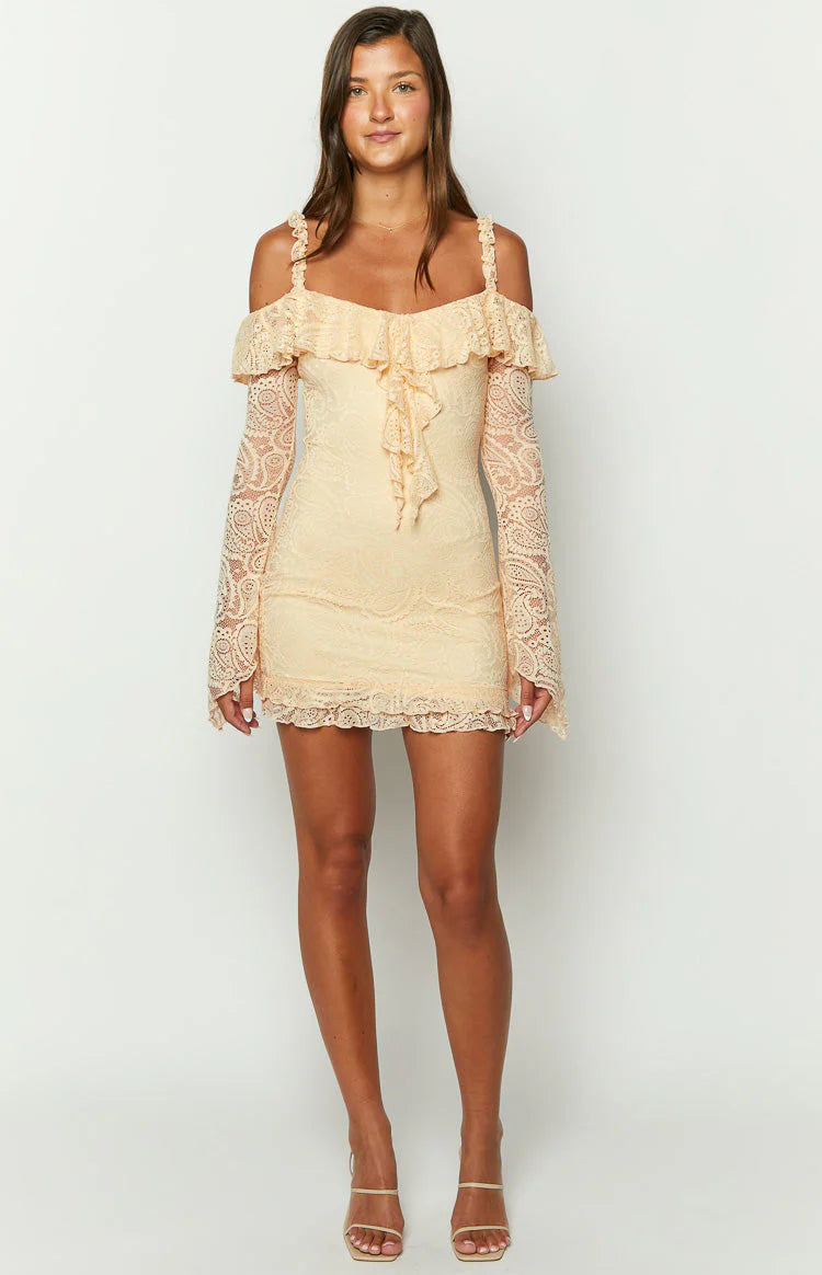 Cream Lace Long Sleeve Dress