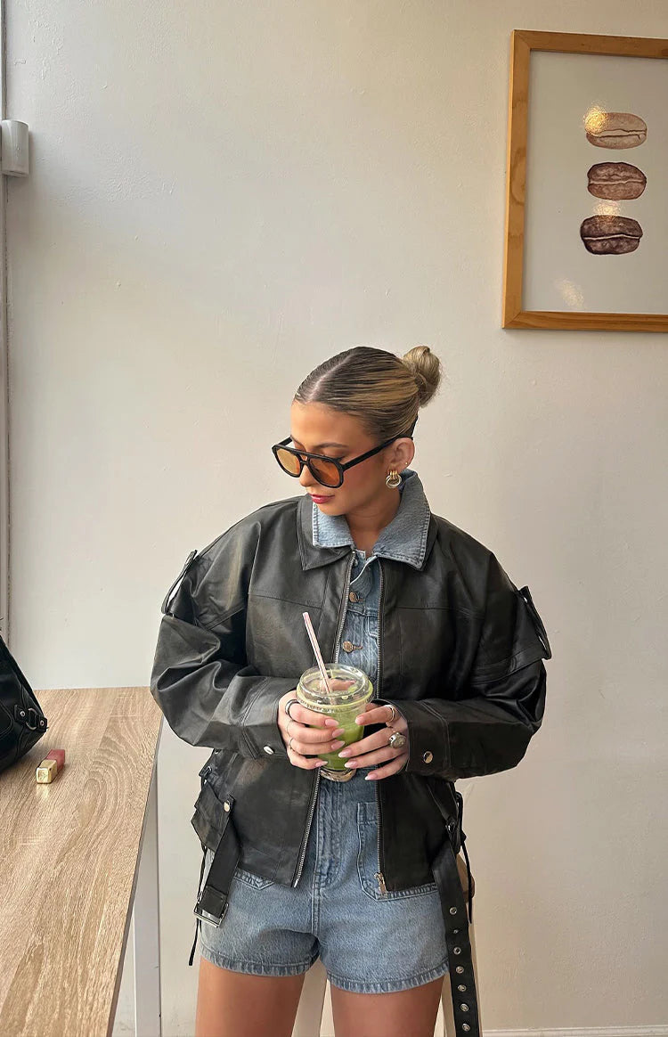 Take your outfit to the next level with our Jessica Anne ! Whether you’re layering it over a or a cute dress, the boxy fit and adjustable belt give it an effortlessly cool vibe. For a night out, style with a black and boots for an effortlessly stunning look!