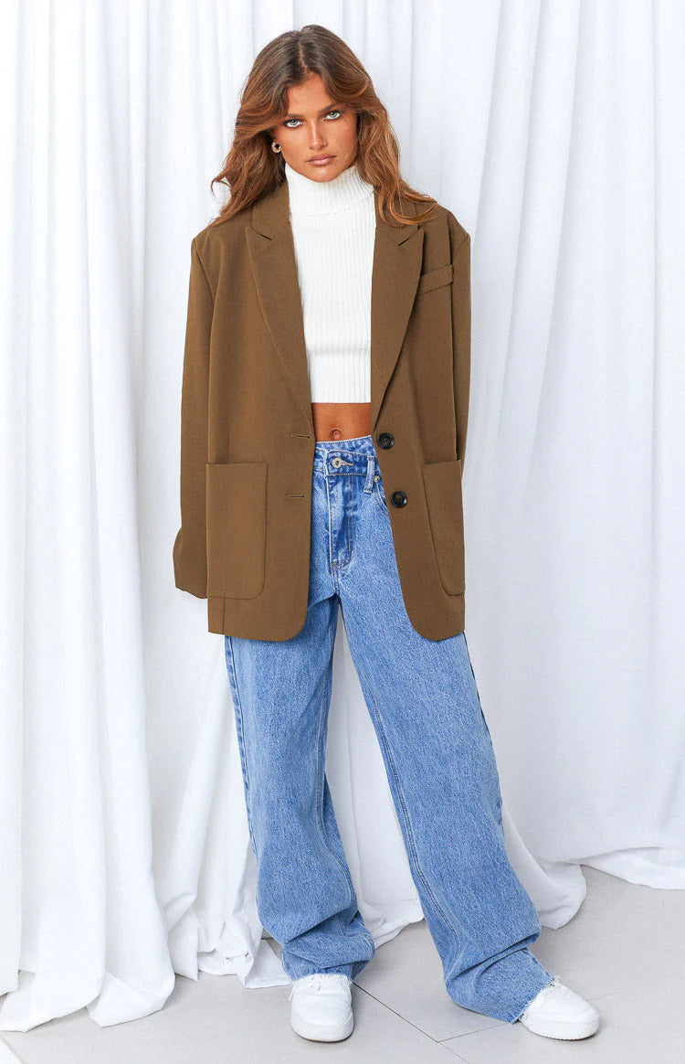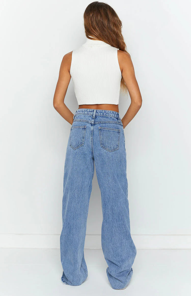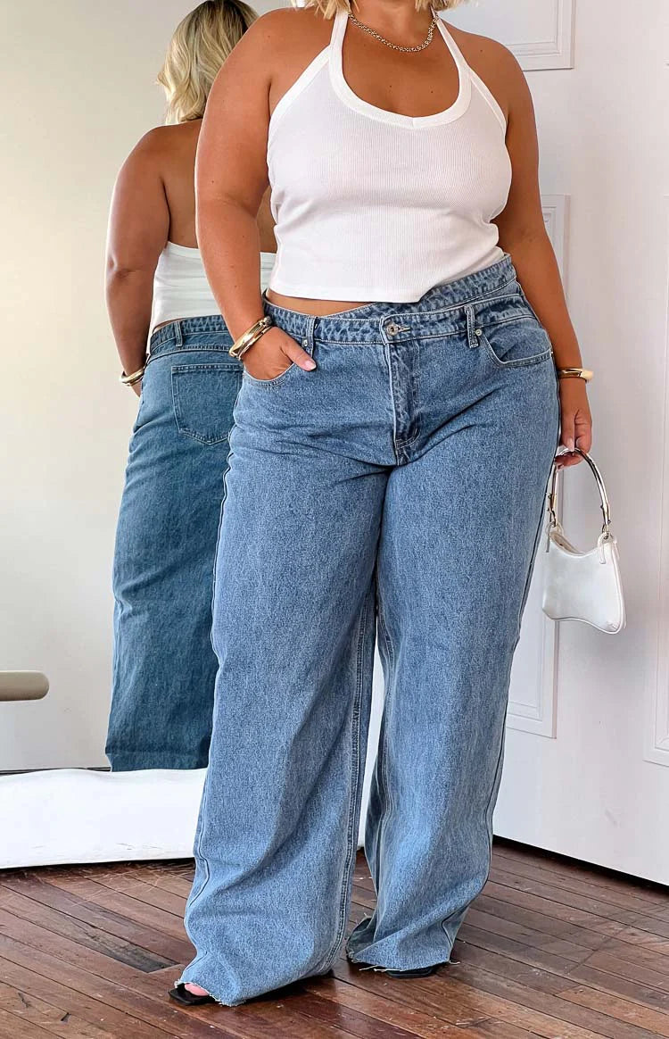 Running down the street in your boyfriend's jeans! This unique pair of denim has us obsessed! Style with a and for that ultimate relaxed look!