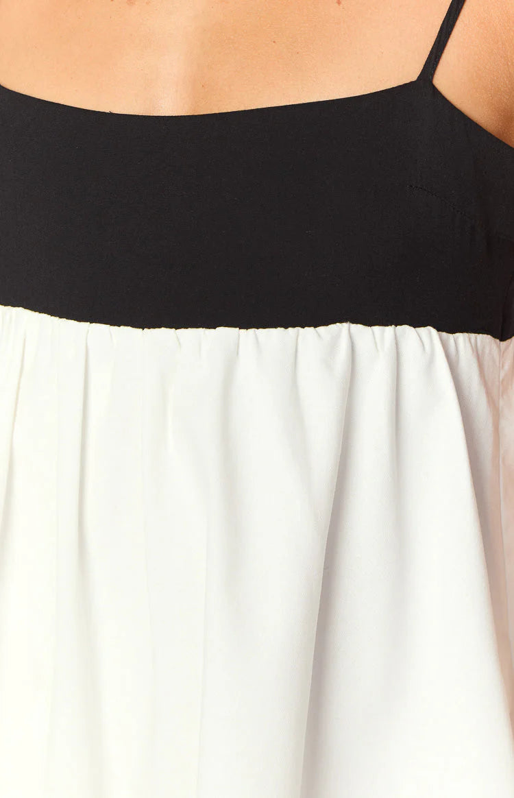 Make a chic statement in our Karia White Contrast Mini Dress! The bold black and white colour blocking and babydoll silhouette create a fresh, modern twist on a classic style. Pair it with strappy heels and a statement clutch for a sleek , or dress it down with and a denim for a fun daytime look!