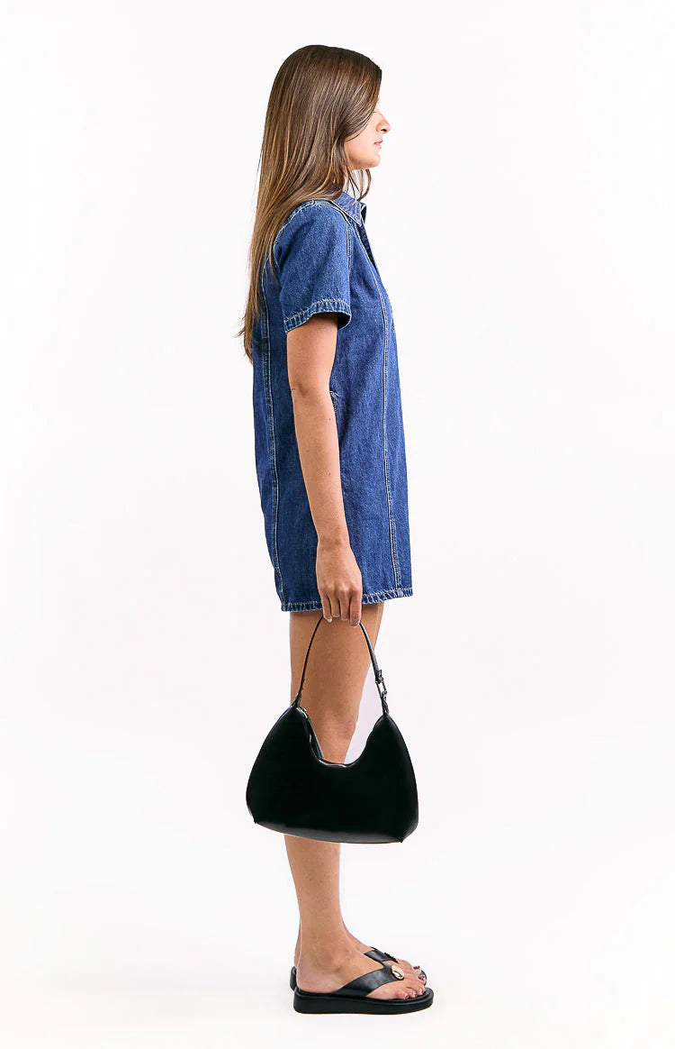 Effortless style starts here with our Lachie Dark Wash Denim Mini Dress, perfect for a day event! This timeless mini features classic collar and placket details with short sleeves for a relaxed, shirt-dress vibe. Add a pair of for an edgy touch or for a cool-girl look.
