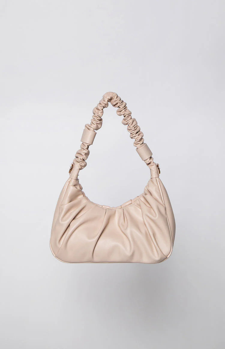 Upgrade your style with the Lizzi Cream Handbag! This elegant shoulder bag features a sophisticated cream tone, scrunch handle for added comfort, and an inner metal clasp closure for security. With gold toned hardware, this bag is the perfect accessory for any outfit.