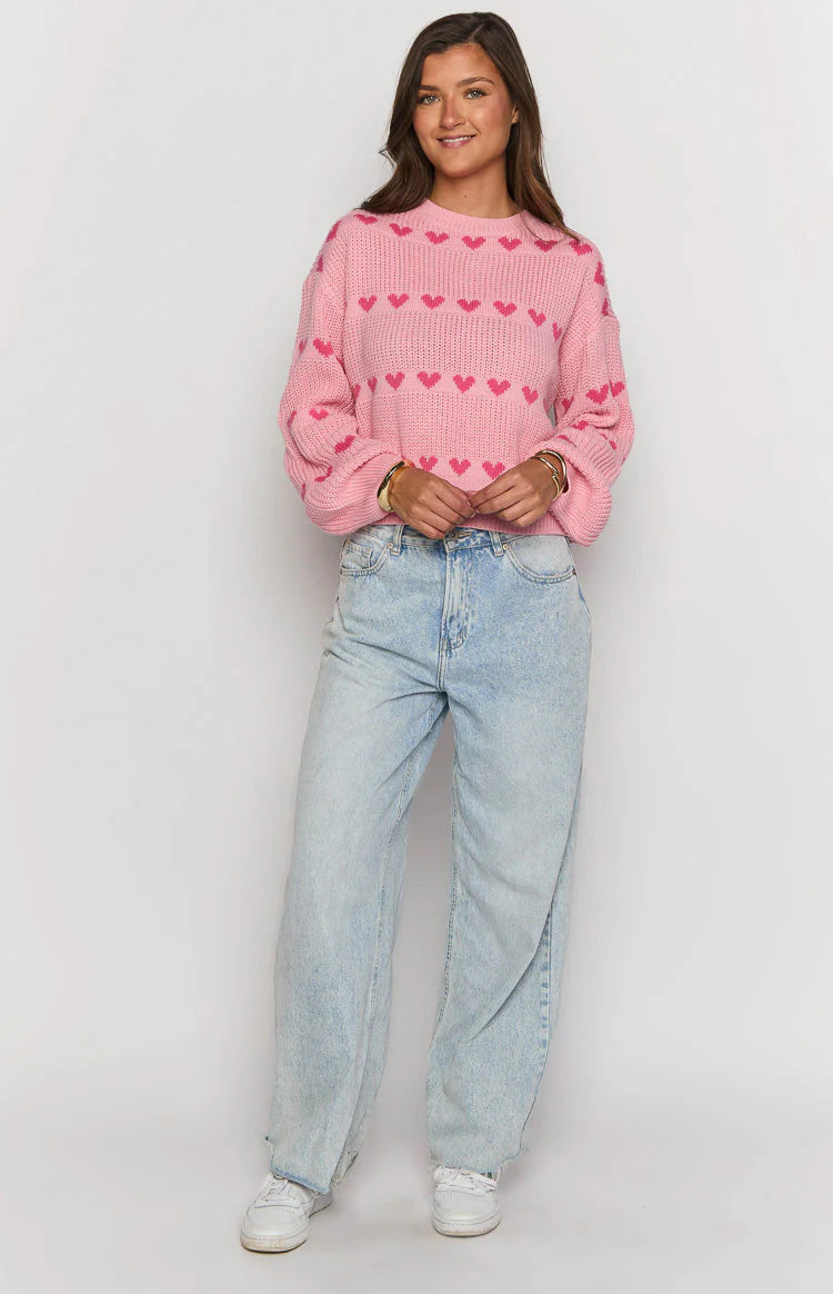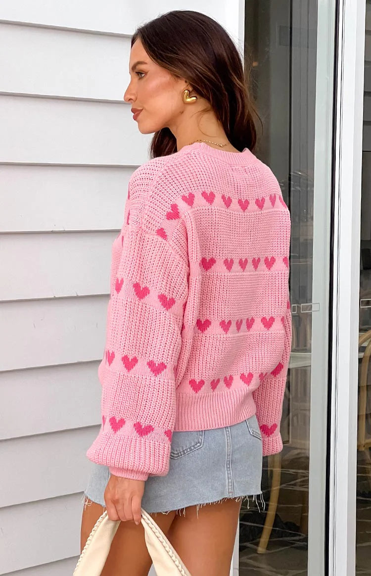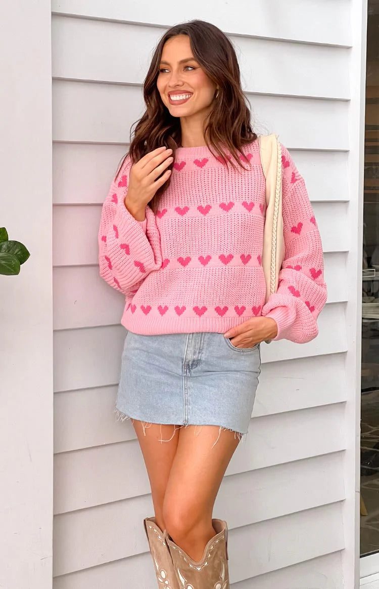 Our Lovey Pink Heart Stripe Jumper will keep you warm and cozy in the season! It is the perfect combination of comfort and style! Simple style with your favourite denim and sneakers for a casual fit! Don't forget to add some gold to elevate the look!