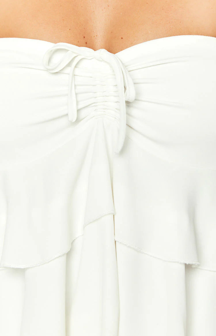Elevate your style with the Miller White Strapless . Featuring a design and mini length, this dress also boasts a ruffled outer. Perfect for any occasion, from a date night to a event.