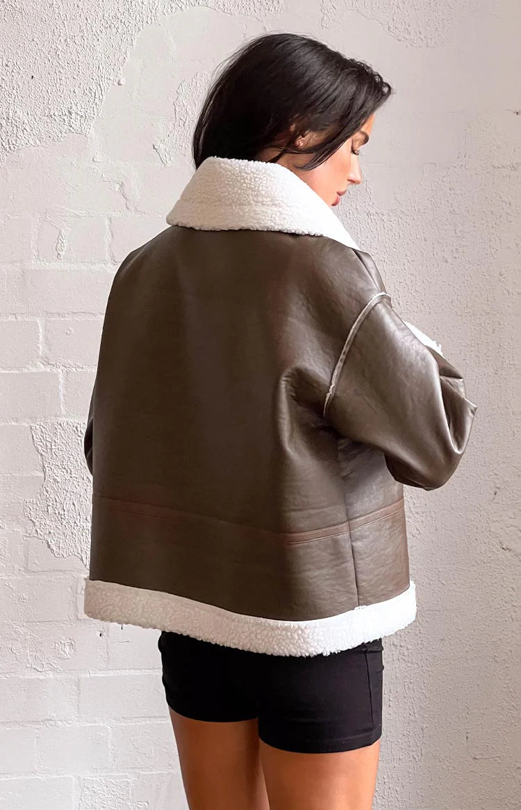 Brown Contrast Sherpa Jacket