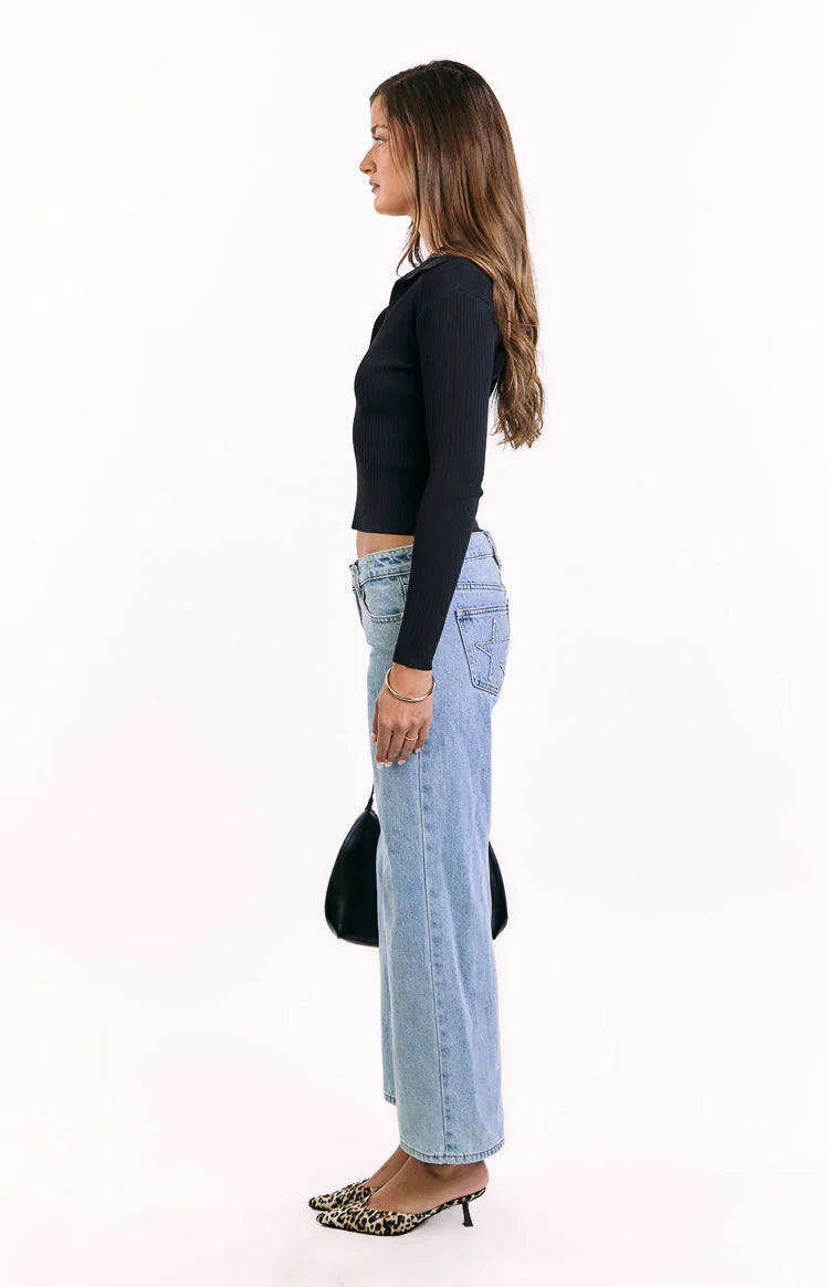 Elevate your everyday style with our Nina Sweater Top, perfect for chilly days and elevated looks! This top features a lightweight rib knit fabrication, a collar neckline, and a tight fit. Style this top with a denim mini skirt and boots, layering with a jacket for those colder days!