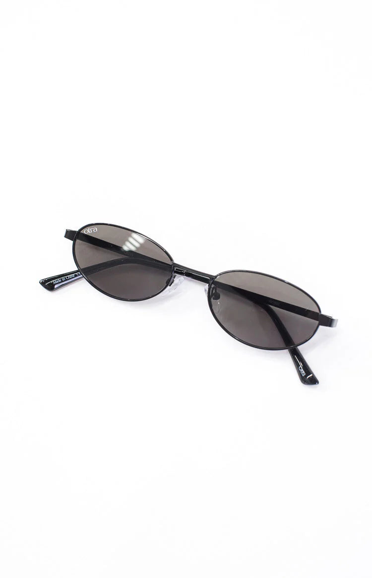 The Rosie Black Oval Sunglasses by Otra bring timeless elegance with their sleek oval metal frame and shiny black finish! The smoke-coloured lenses add a touch of sophistication, making them perfect for events or These sunglasses are the perfect finishing touch to elevate your outfit!