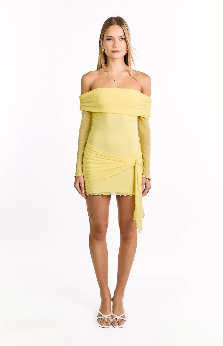 Yellow Off-The-Shoulder Ruched Mini Dress