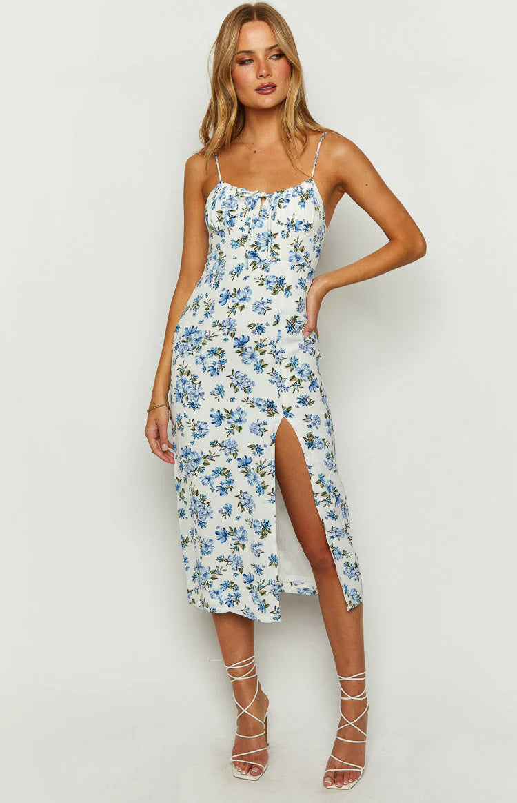 We are living for floral this summer! It is the perfect for any summer occasion due to its light weight material. Style this with a white low kitten heels and a small mini to finish the look.