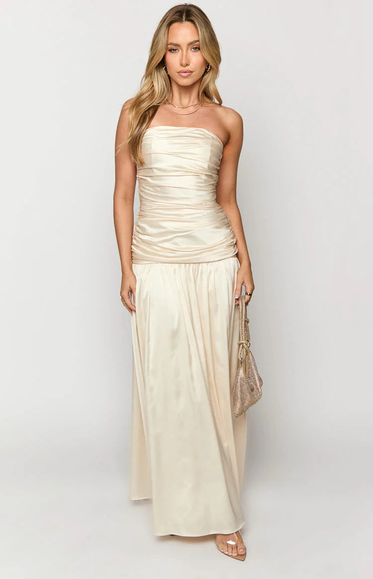 Our Sinclair Strapless is full of ruching and different textures to create a statement. This is the perfect dress for any big event like , a birthday dinner, or big celebration. Simply style with a plain pair of and a shoulder bag. Complete the look with a pearl necklace and gold jewellery.