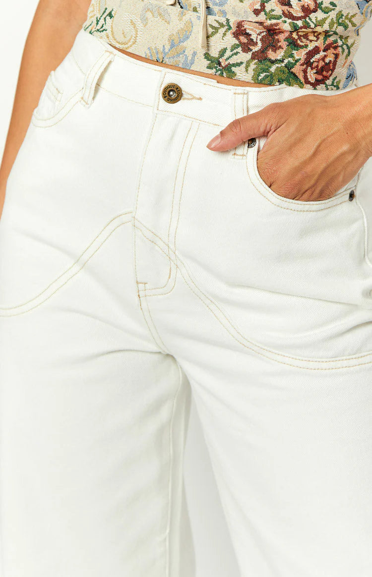 These white mid rise is perfect to add to your staple pieces collection. Wear this with tops and for the elevated look or tank top and sneakers for the model off duty look.
