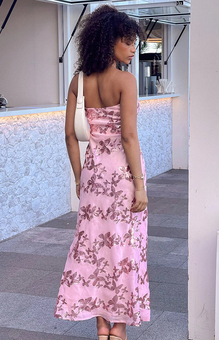 Make a magical entrance in our gorgeous Tari Maxi Dress adorned with playful butterfly details! This enchanting piece flows beautifully, perfect for weddings or garden parties. Pair with delicate and a clutch for a whimsical day time look!
