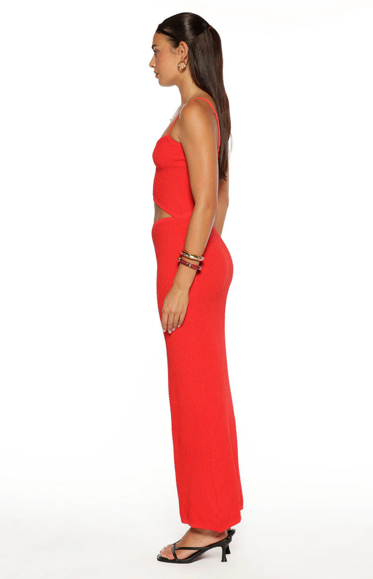 Red Knit Cut Out Maxi Dress