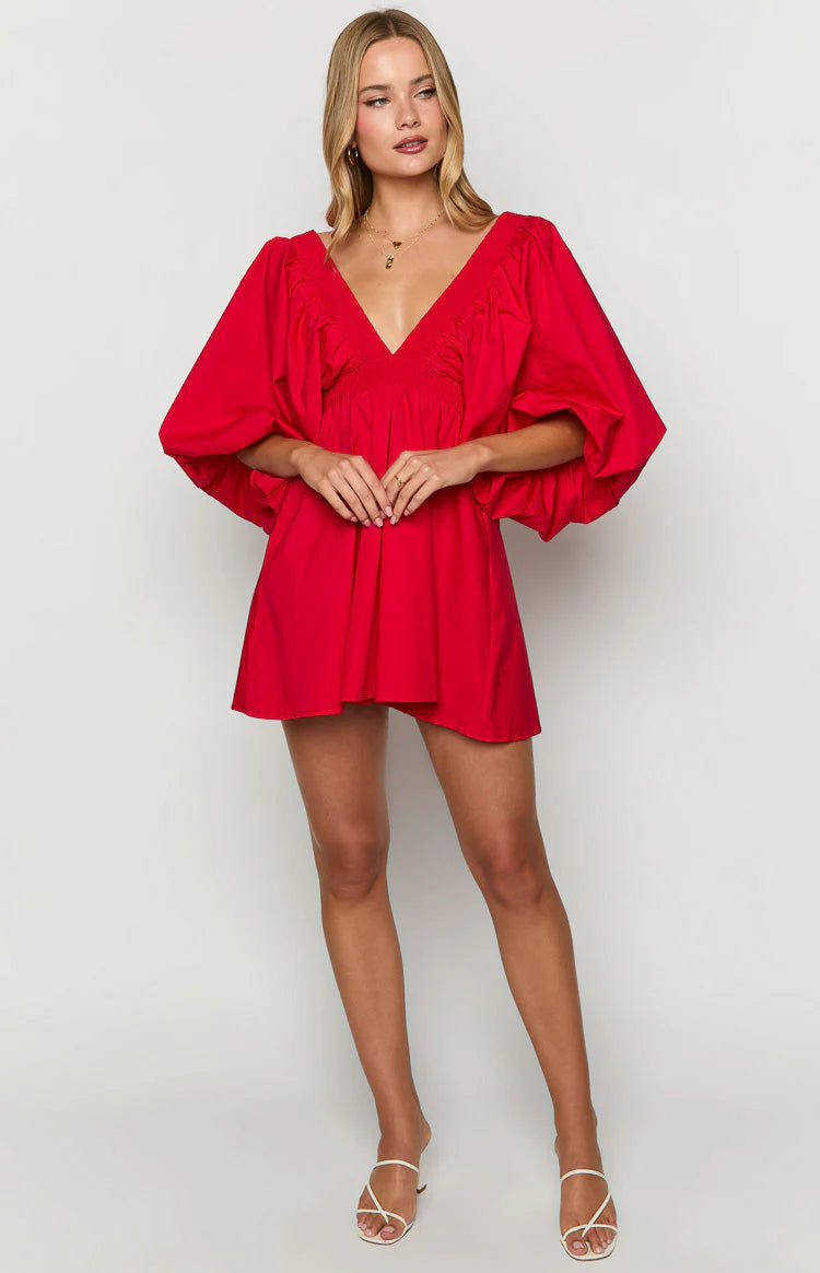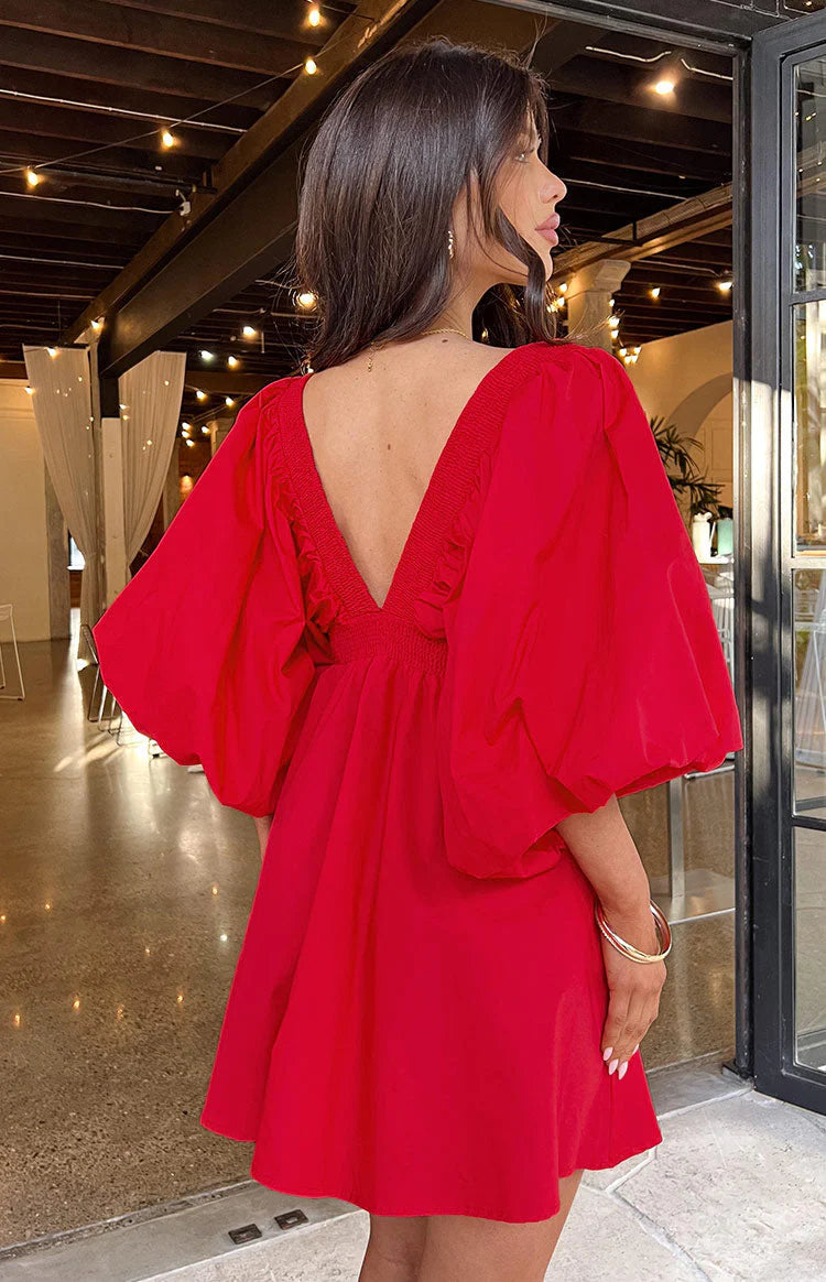 This cute red featuring a deep V neckline and puff sleeves is perfect for your next late lunch with the girls! Pair it with some strappy and your favourite to elevate your look.