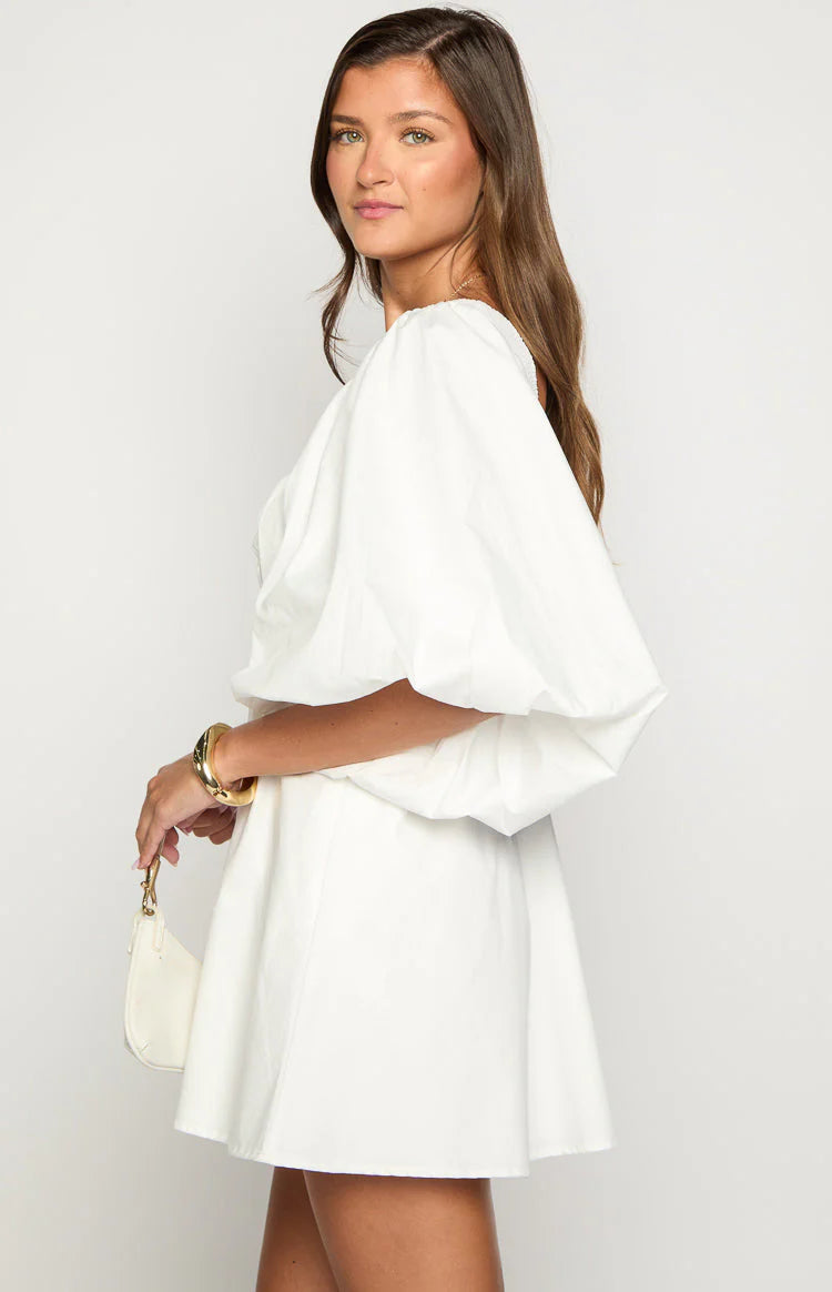 Our Torie White Short Sleeve Mini Dress offers effortless style with its relaxed, flattering fit. The plunge V neckline and puffed sleeves add a touch of femininity, while the elastic stretch waist ensures comfort and shape. Perfect for or brunches, pair it with and a wide-brimmed hat for a fresh, easy-going look!
