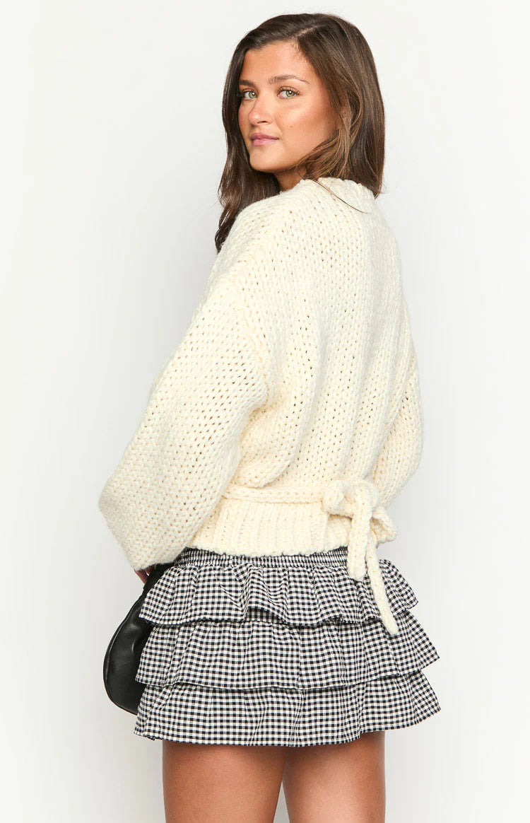 Our Verity Cream Knit Wrap Cardigan is your ultimate companion for crisp days or cosy evenings! Crafted from soft chunky , it offers a luxe texture while the flattering V-neck wrap design and adjustable tie closure ensure a perfectly customised, comfortable fit. For an effortlessly relaxed look, layer it over a fitted long-sleeve top and your favourite !