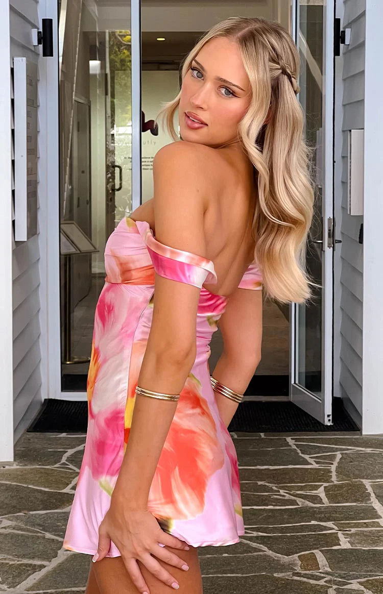 Our Zoella Pink Floral Mini Dress is the perfect mix of playful charm and  elegance! The vibrant floral print and gathered bust detailing create a flattering and feminine silhouette, while the lightweight satin material ensures comfort. Ideal for a lunch date or day events in the spring, pair it with sandals or  and add for a gorgeous look!